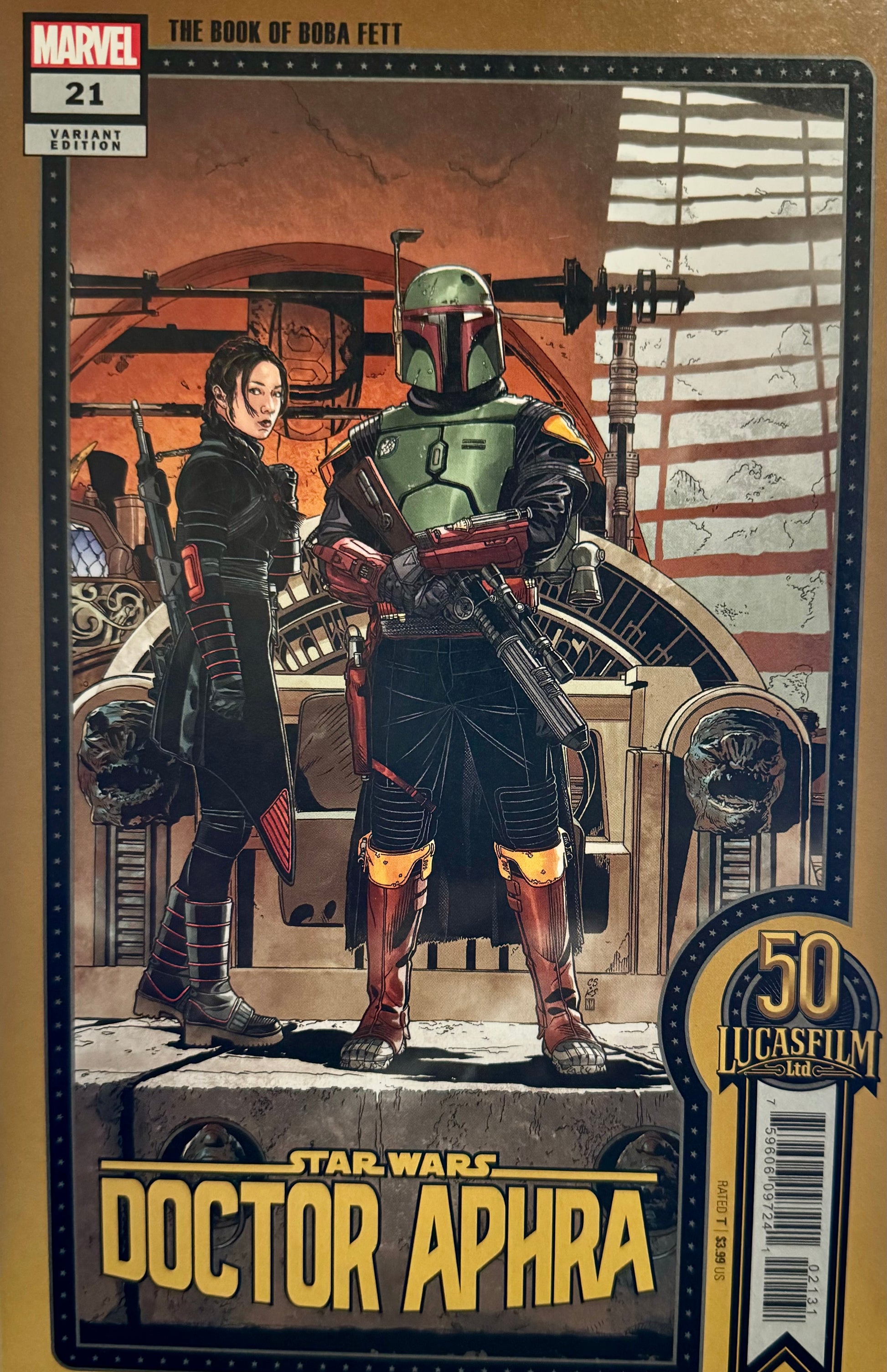 Written by Alyssa Wong. Art by Minkyu Jung. Cover by Chris Sprouse. "DESPERATE MEASURES!" The SPARK ETERNAL corrupts everything it touches, and DOCTOR APHRA is no exception! Face-to-face with an ancient, malevolent presence, SANA STARROS will have to make a choice… Can she save Aphra? Can she even save herself? 28 pages, full color. Rated T