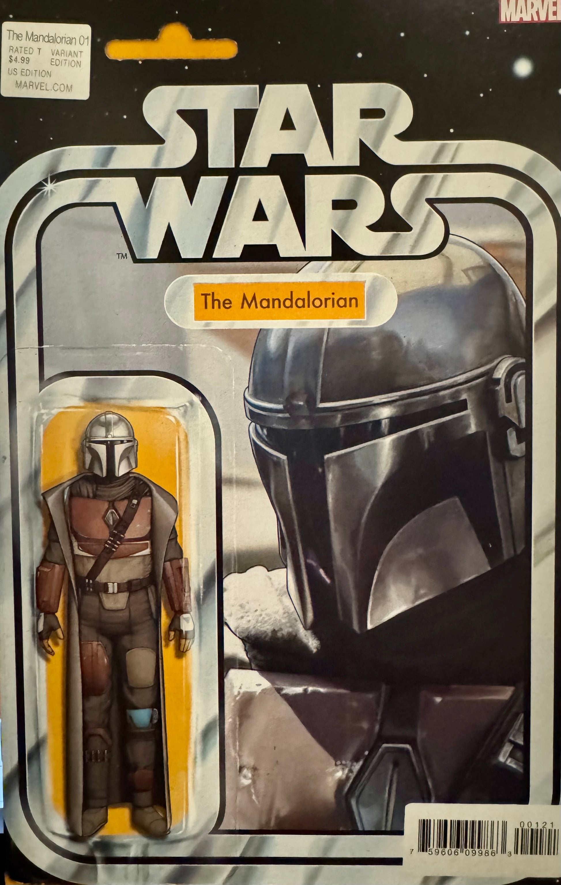 Written by Rodney Barnes. Art by Georges Jeanty. Cover by John Tyler Christopher. For the first time, THE MANDALORIAN arrives in comics! The Mandalorian bounty hunter tracks a target for a well-paying, mysterious client. Witness the introduction of Din Djarin and the first meeting between the Mandalorian and the Child! 40 pages, full color. Rated T